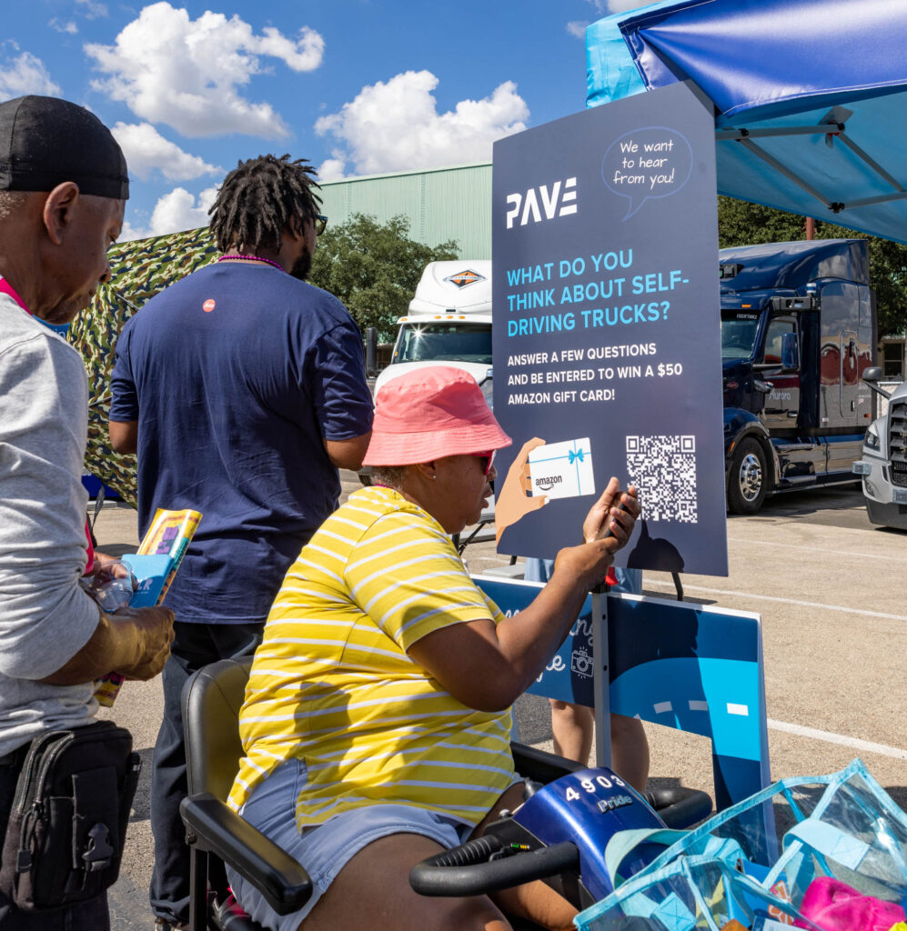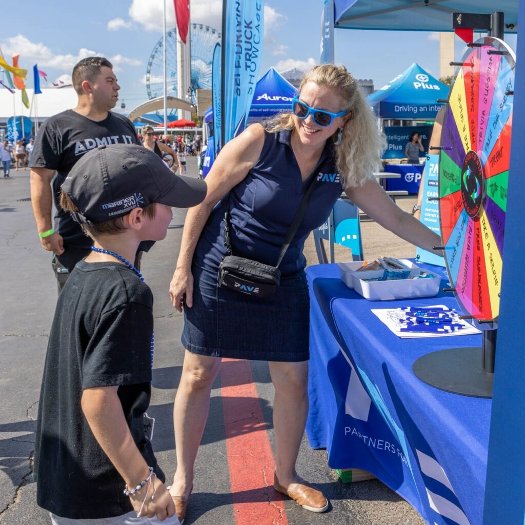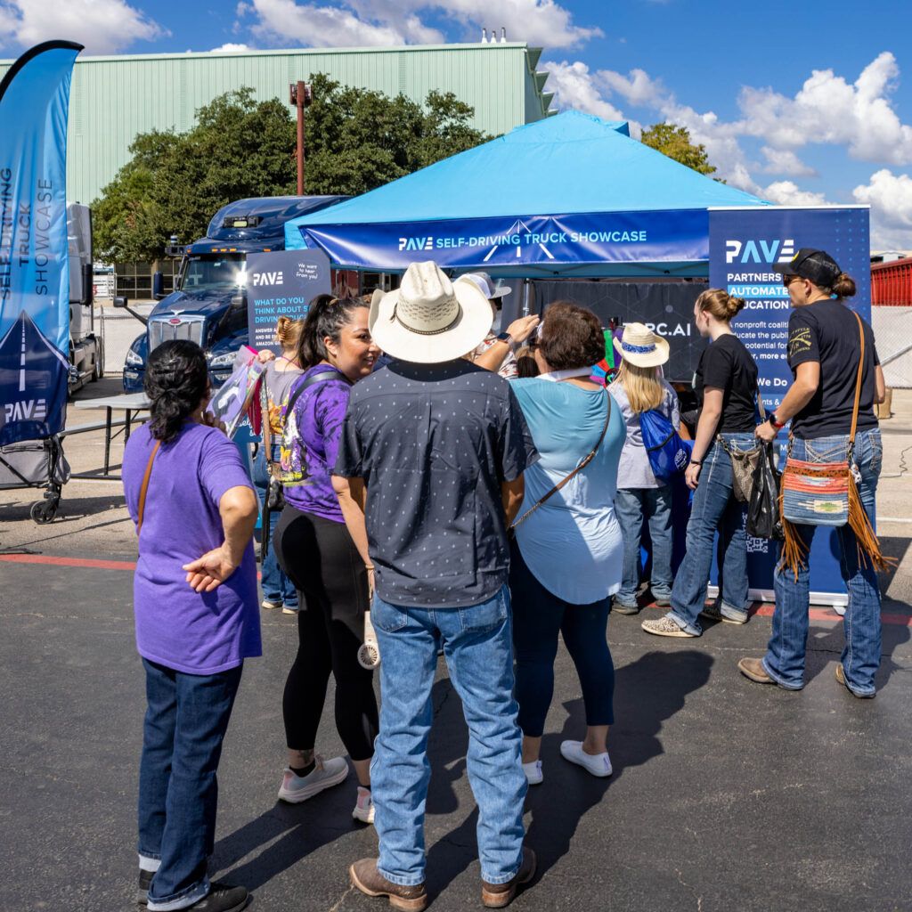 In October 2024, PAVE and autonomous trucking companies Aurora, Plus, and Torc exhibited at the Texas State Fair for a first-of-its-kind Autonomous Trucking Weekend. The four organizations, along with the Texas Department of Transportation, hosted a 2,500-square-foot exhibit where visitors of all ages could see autonomous trucks firsthand, interact with hands-on displays, talk to engineers and industry experts, and more.